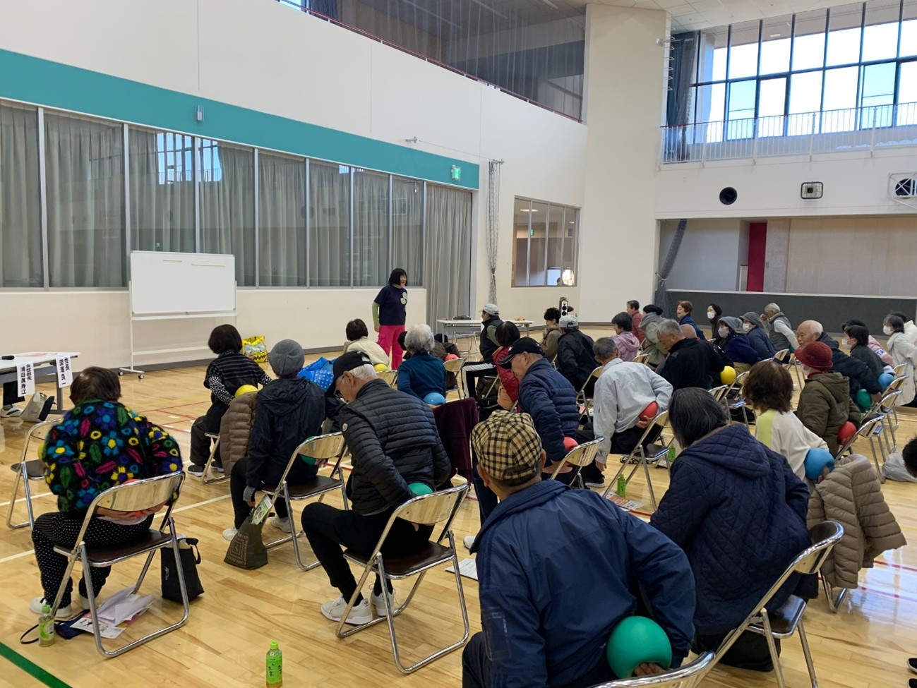 12月9日(火)太子町老人クラブ連合会「楽しくなる 夢中になる 笑顔になる」健康運動指導士 田口 たえ子 氏 2025/12/19 講座日 12月9日 会 場 創継町民体育館(太子町立町民体育館) 団体名 太子町老人クラブ連合会 演 題 「楽しくなる 夢中になる 笑顔になる」 講 師 田口 たえ子氏 分 野 からだ(運動) 田口先生の分かりやすいお話と脳と手を使った体操で、参加者はリラックスした笑顔になりました。先生からは「声を出すことが大切」と教わりました。終了後は「久しぶりに笑って楽しかった。どこで教室をされてるの?」「地区のふれあいサロンに田口先生を講師としてお招きしたい」などの声をいただきました。