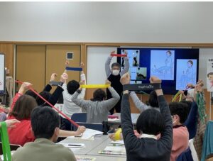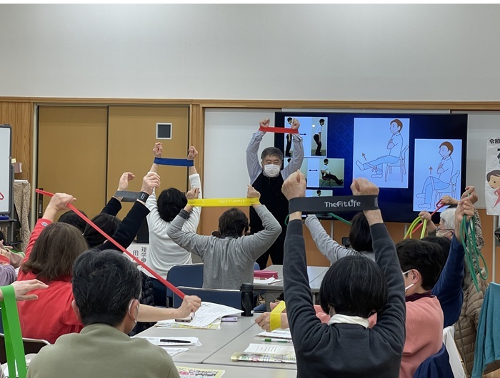 フレイルの基礎知識や予防の重要性についてわかりやすくご講話いただきました。フレイルチェックや指輪っかテストを実施し、自身の状態を確認する機会となりました。実技では、椅子を用いた筋力トレーニングやチューブトレーニングを行い、日常生活に取り入れやすい運動方法を学びました。講話は終始楽しい雰囲気で進められ、運動についても丁寧な説明があり、参加者にとってわかりやすい内容でした。