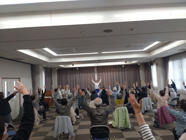 参加者の皆さんはとても楽しそうにリズムに乗って体操しておられ、先生のユーモアあふれるご指導のおかげでとても満足しておられました。